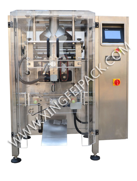 3. 本機(jī)與計量配置可自動完成計量.送料,充填制袋、日期打印、充氣(排氣)、成品輸送的全部包裝過程,并自動完成計數(shù)。