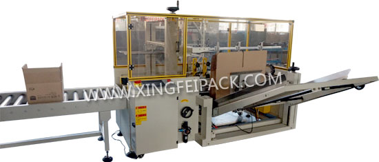 本機(jī)將疊成紙板的箱子自動打開,箱子底部按一定程序折合,并用膠帶密封,可單獨(dú)使用,也可與裝箱機(jī)連線使用。廣泛應(yīng)用于食品,化工,日用品等行業(yè)。